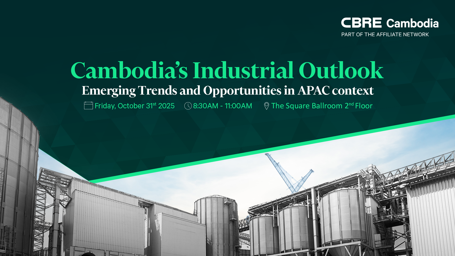 Our Cambodia’s Industrial Outlook event at Novotel Phnom Penh BKK 1 was a success! Thank you to our esteemed speakers and attendees for the insightful discussions on Friday, October 31 2025. We look forward to seeing how these trends shape Cambodia’s Industrial and Logistics sectors in the coming year.